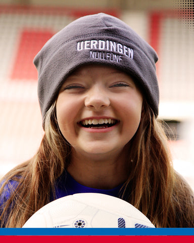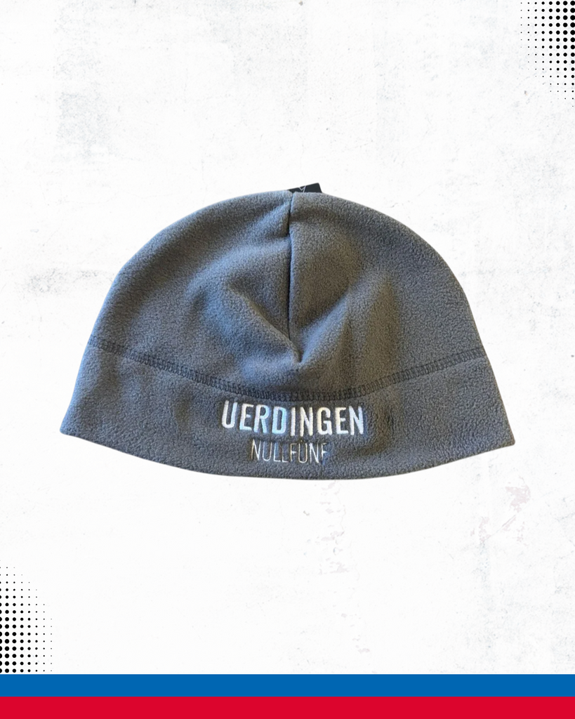 Warme Fleecemütze mit gesticktem Schriftzug „Uerdingen 05“. Hergestellt aus 100 % recyceltem Polyester und bei 40 Grad waschbar. Hält an kalten Tagen zuverlässig warm – ob im Stadion, auf dem Weg zur Arbeit oder in der Freizeit.