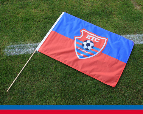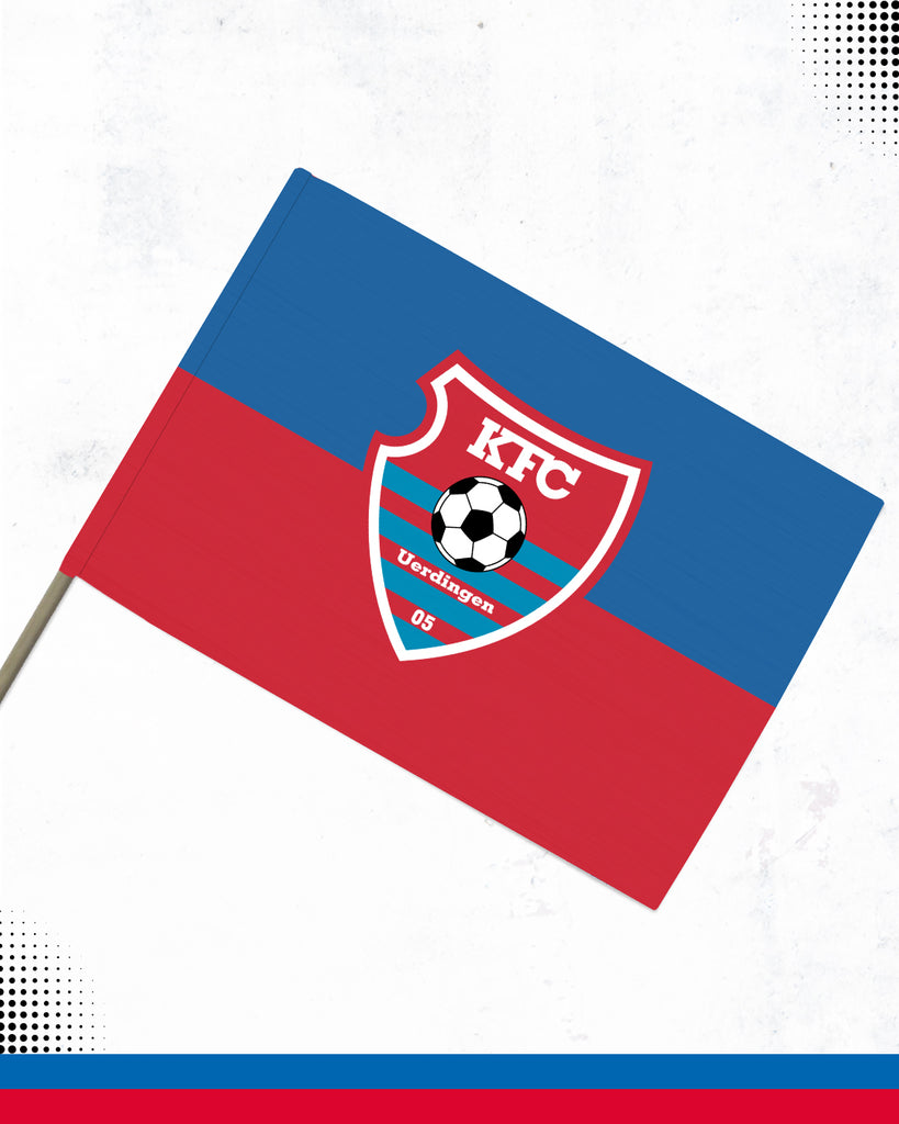 Frisch, cool und ready zum Schwenken: Die Schwenkfahne im neuen Design bringt echte KFC Uerdingen Power aufs Spielfeld. Mit 91 x 60 cm und 120 cm Holzstab perfekt für Fans, die zeigen wollen, wo ihr Herz schlägt. Aus robustem Polyester – nur vor Ort im Stadion oder in der Geschäftsstelle erhältlich. Kein Versand.