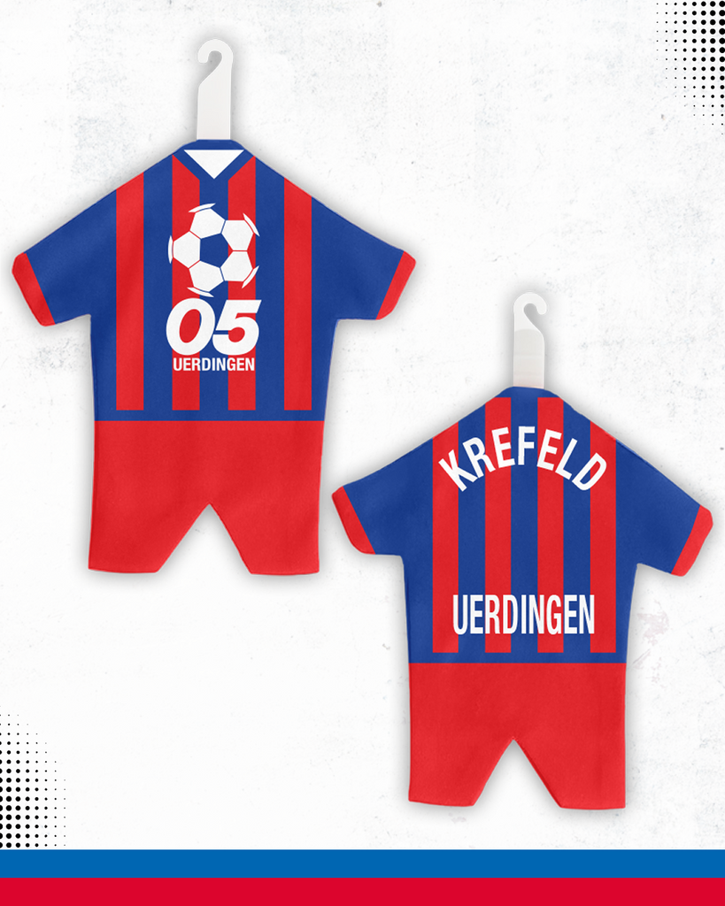 Das Mini-Trikot „90er“ bringt den Kult der KFC Uerdingen 90er-Jahre direkt an dein Auto. Mit originalgetreuem Design und Vereinslogo ist es das perfekte Accessoire für echte Fans, die ihren Stolz auch unterwegs zeigen wollen.