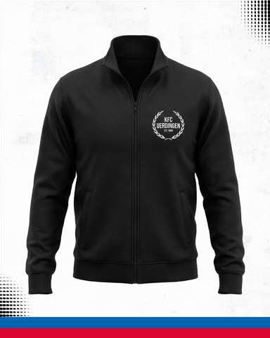 Die Wiederauflage der KFC-Sweatjacke in schwarz – easy und lässig. Mit Stehkragen, praktischen Taschen und geradem Schnitt. Auch in dunkelblau erhältlich.