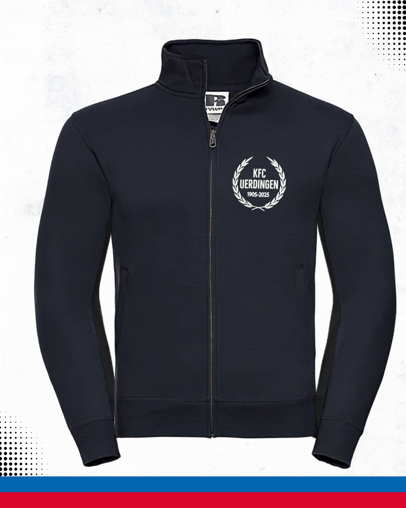 Die Wiederauflage der KFC-Sweatjacke in royalblau oder schwarz – easy und lässig. Mit Stehkragen, praktischen Taschen und geradem Schnitt.