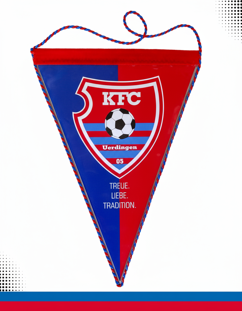 Der KFC Uerdingen Wimpel (29 x 20 cm) kommt mit Kordel zum Aufhängen. Groß genug, um direkt aufzufallen