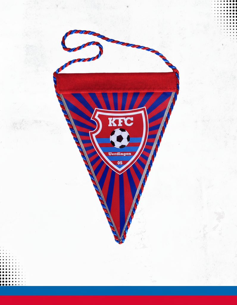 Der KFC Uerdingen Wimpel in Blau und Rot ist ein echter Hingucker, egal wo er hängt. Mit dem klaren KFC Logo und der praktischen Kordel setzt er ein Statement für echte Fans – kompakt, stylisch und direkt aus der Grotenburg.